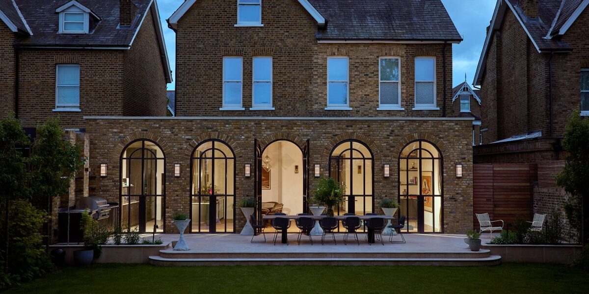 Victorian façades rely on vertical proportions, repetition and curved openings. When we add glass, we mirror those proportions without copying historic details. At the rear, a frameless oriel window with a deep seat can stand in for a traditional bay while keeping the elevation calm and modern. Where arches are part of the pattern, thermally broken steel arched doors keep the curve visible on garden elevations; in more sensitive spots a simple frameless arched opening with a discreet lintel and mortar-joint fixings protects the original brickwork. We retain reveals, cills and quoin lines so the original remains readable; the new reads as contemporary; and the junction is honest, which helps with permissions and long-term maintenance.