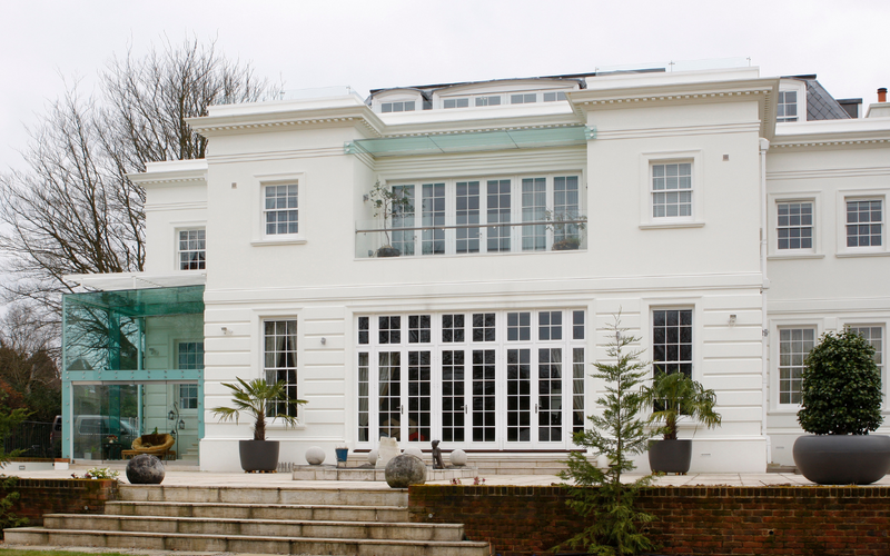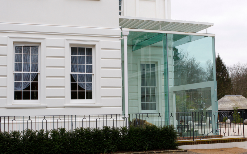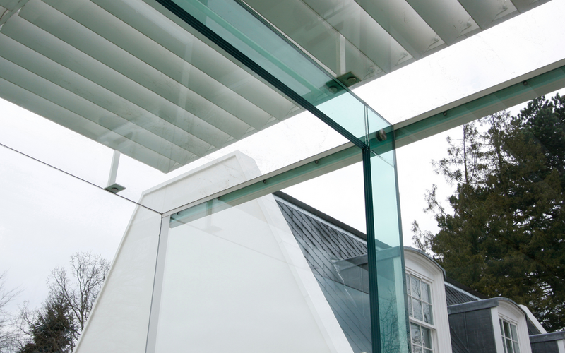 This glass box extension was installed onto a listed brick home in Hampstead, London as part of a rear refurbishment. The structural glass box was created using low iron structural glass. This ensured that the frameless glass box maintained its clarity and transparency against the listed building. The low iron glass was utilised across the frameless glass walls, roof as well as the structural glass beams.