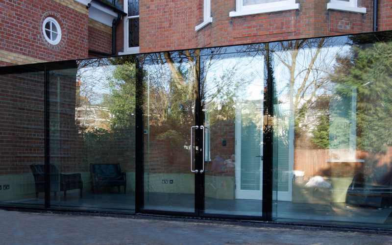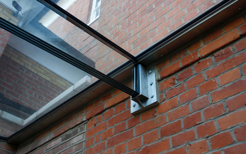 In the end, we worked with the architect to develop a fixing and connection detail with brushed stainless steel brackets and channel work. This ensured that the glass extension was firmly connected to the listing building while creating an attractive combination of glass, brick and stainless steel.