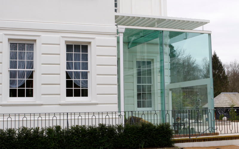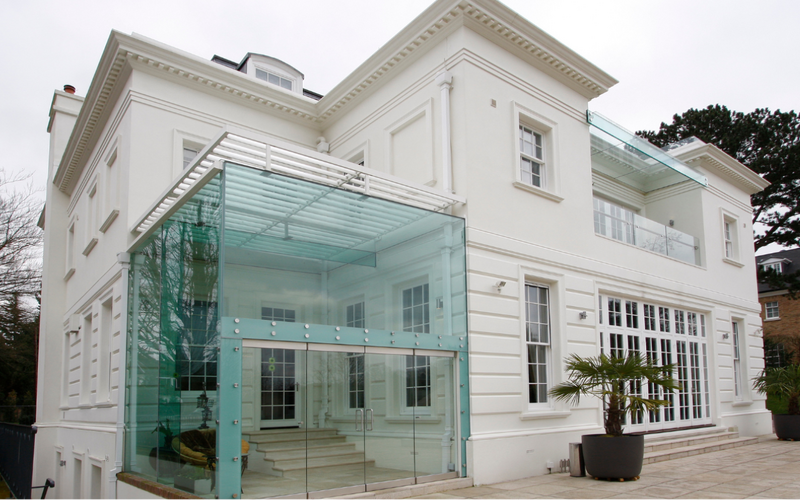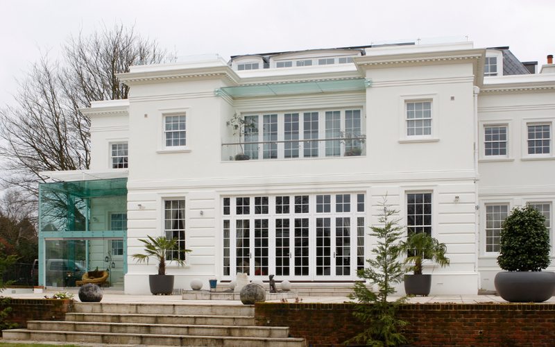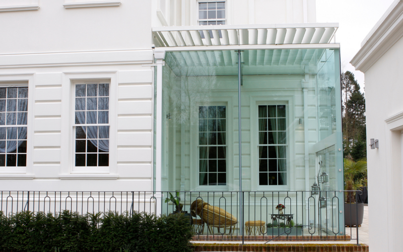 IQ Glass designed and constructed a single glazed glass conservatory for this large residential project overlooking Sunningdale Golf Course as well as some structural glass elements to the balcony space.